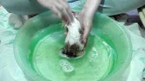 3- molhe o seu animal calmamente e cuidado , nada pode cair nos olhos ,na boca e também na orelha.